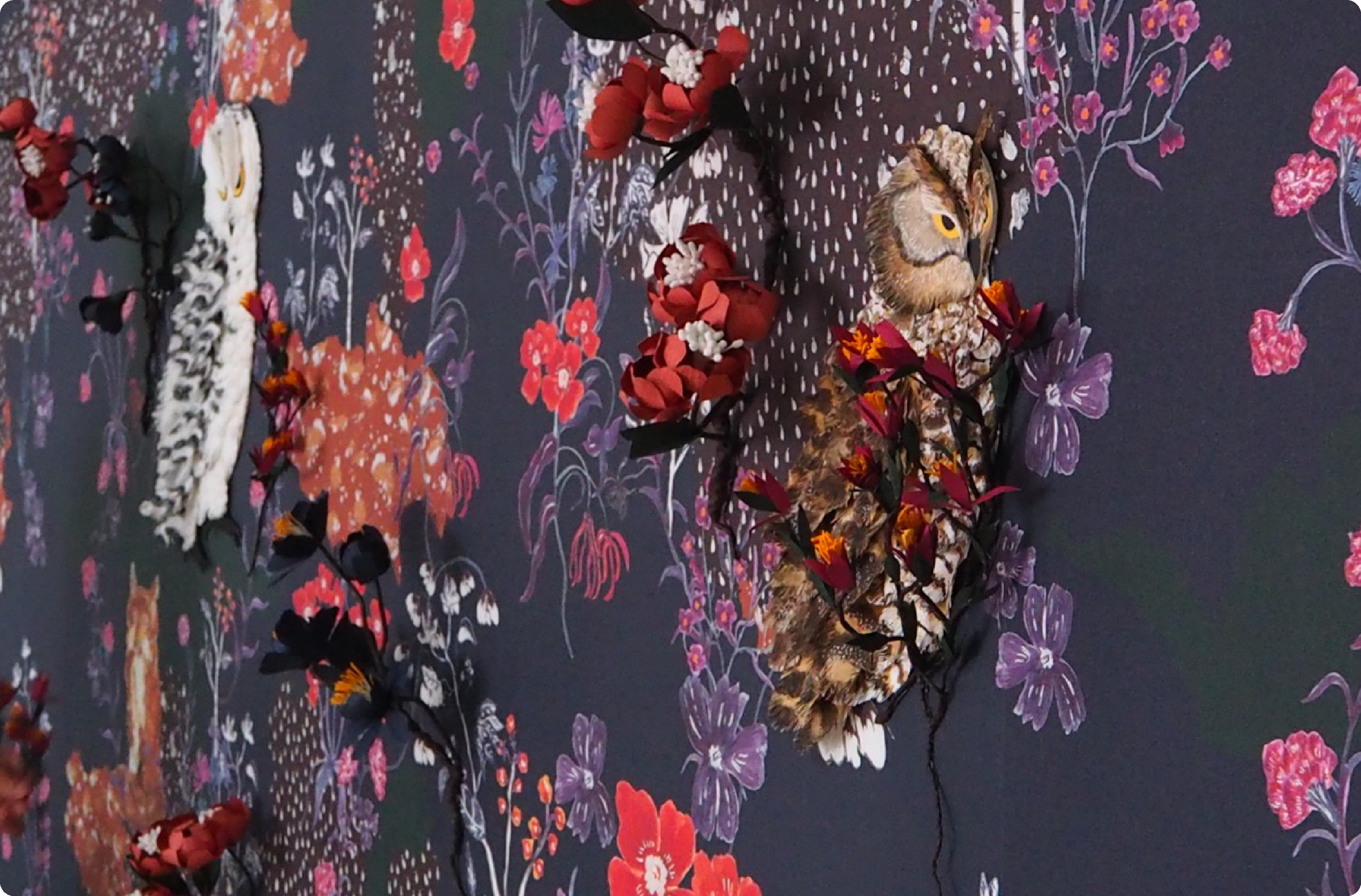 Wallpaper illustration and paper art for reception wall at House of Fox company.